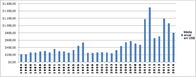 MÉDIA DOS VALORES ANUAIS DA RESINA - FOB/FAZENDA 1984 a 2016